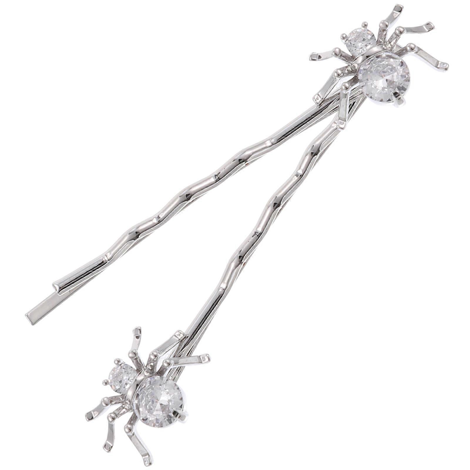 1 Pair of Funny Zircon Spider Hairpins Simple Barrettes Hair Accessories for Women and Girls (White Gold)