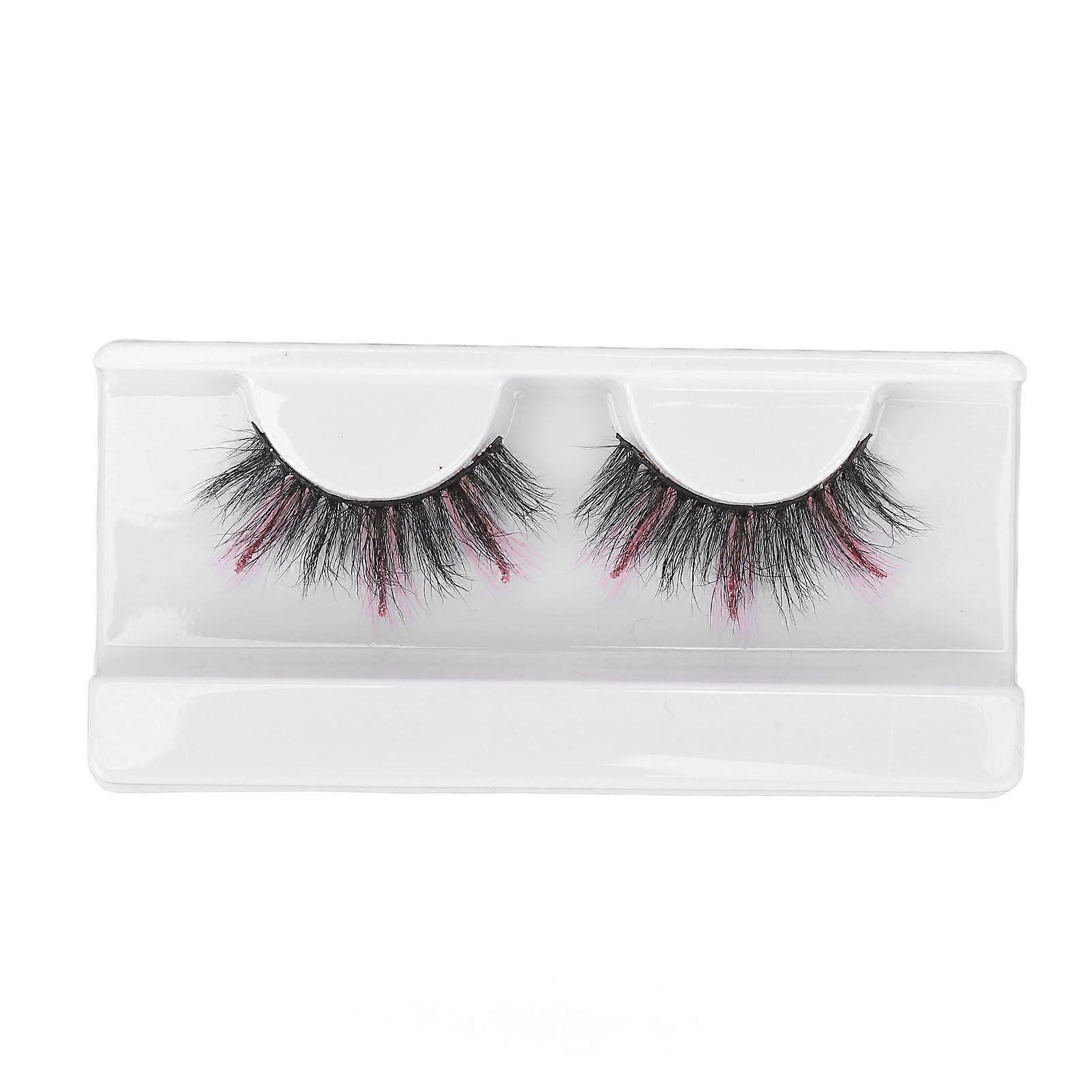 1 Pair 18mm Colored False Eyelashes Cosplay Costume Party Long Curly Pink Glitter Fake Eyelashes for Women P7I01-3