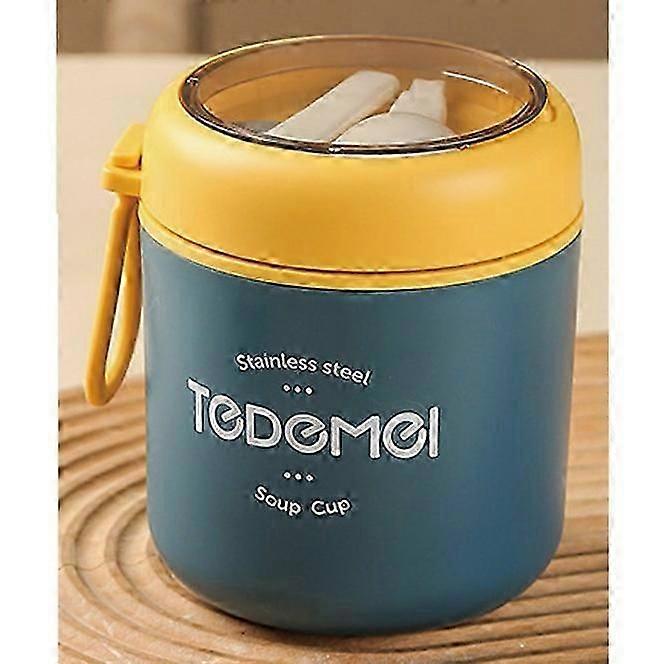 1 Storage BoxTakeaway Cereal Cup, Meal Box, Takeaway Muesli Bowl with Spoon and Lids for Muesli, Coffee, Yogurt Set for School, Office, Camping (blue)