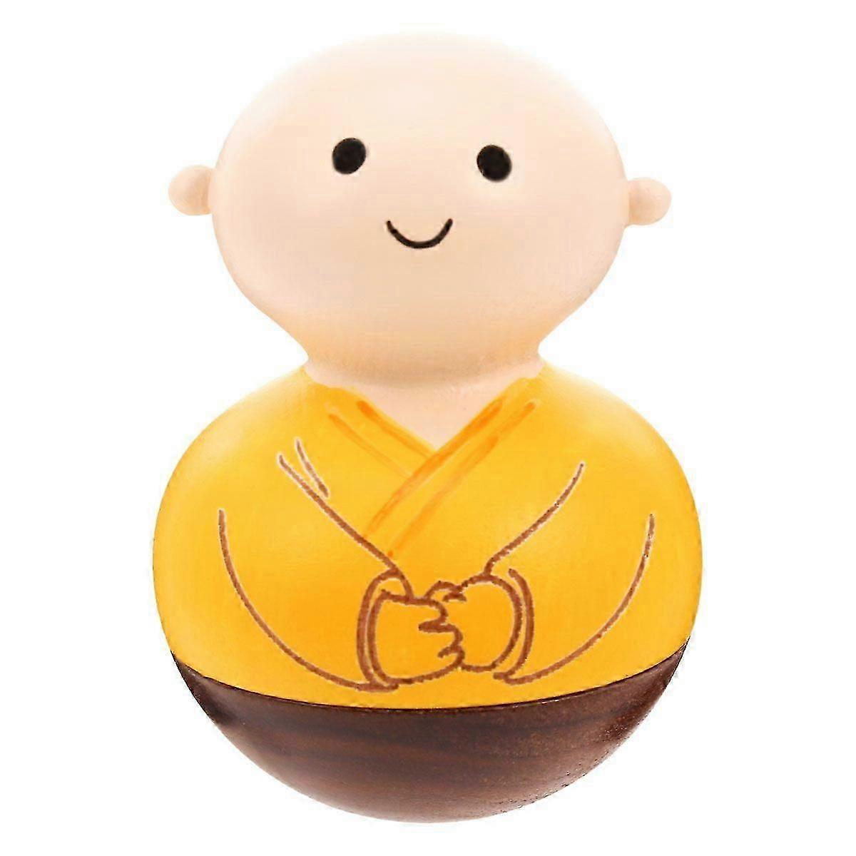 1pc Wooden Crafts Tumbler Monk Table Decoration Creative Handmade Toy Handcraft Accessories for Home Gift (Yellow, Eye Open)