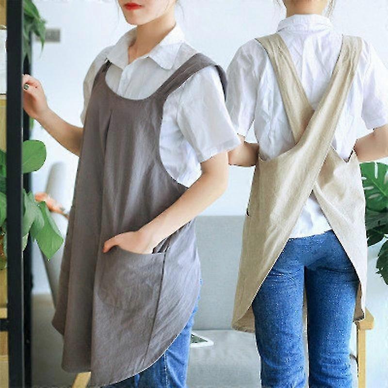1 Piece Retro Female Women's Apron Cotton Linen Apron Dress Cafe Kitchen Cooking Florist