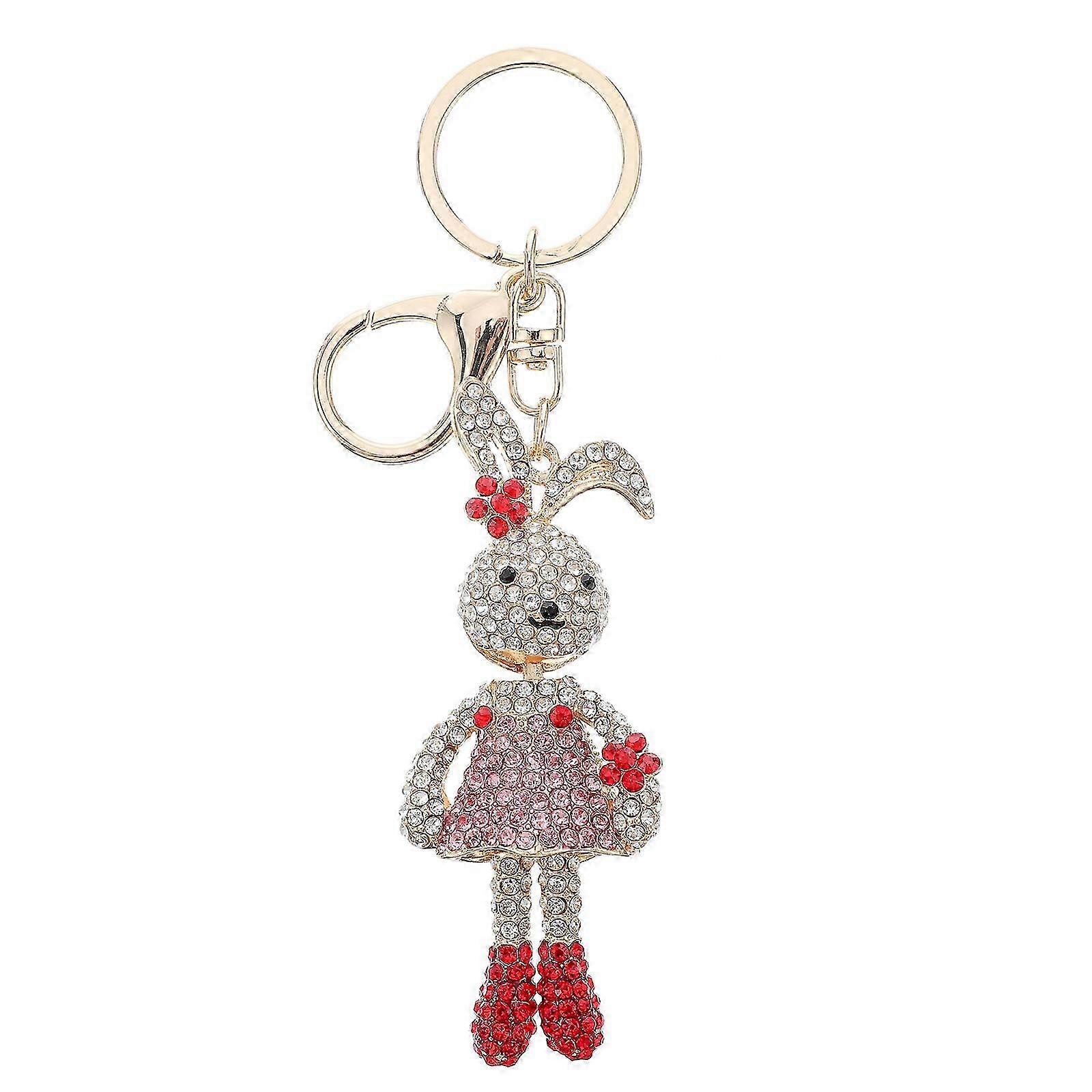 1pc Rabbit Shape Hanging Keyring Rhinestone Key Chain Portable Pendant Accessory