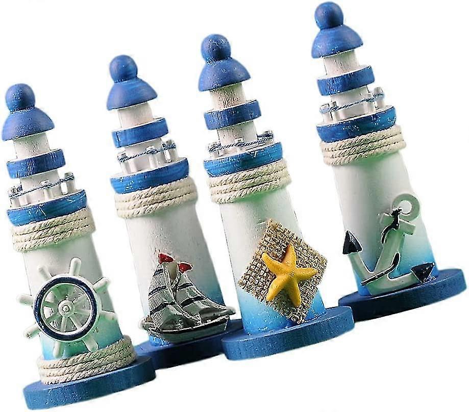 1pc Nautical Miniature Lighthouse Decor Wood Lighthouse Ornament Fairy Garden Micro Landscape