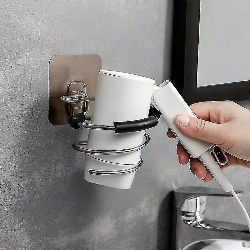 1pc Wall Mounted Hair Dryer Holder Adhesive Convenient No Drilling Hair Dryer Holder for Hotel Bathroom Toilet Barber Shop,10*12cm.Wide usage: can be