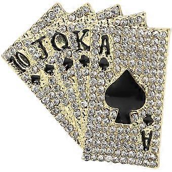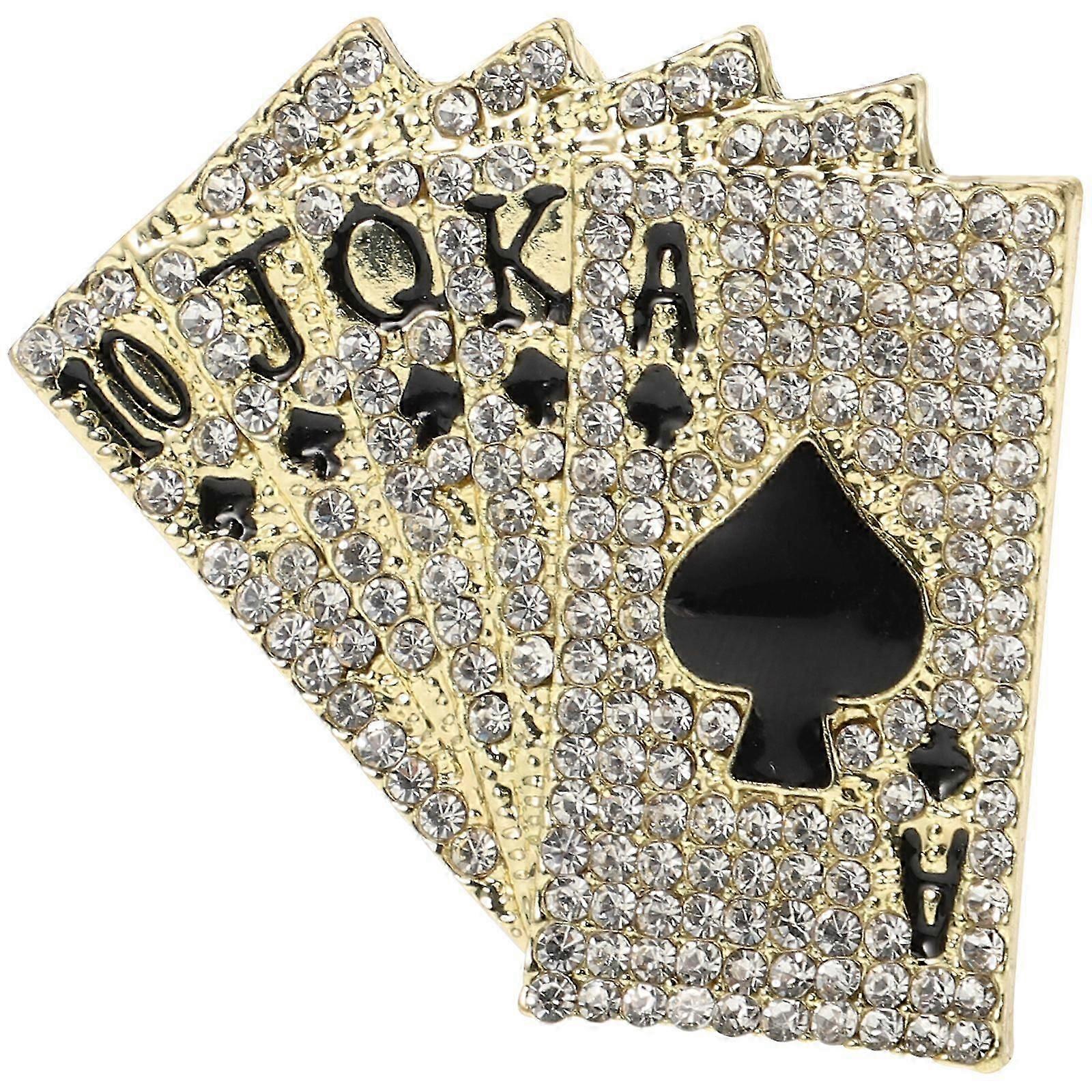1Pc Decorative Brooch Fashion Playing Cards Shaped Corsage Accessory (Golden)