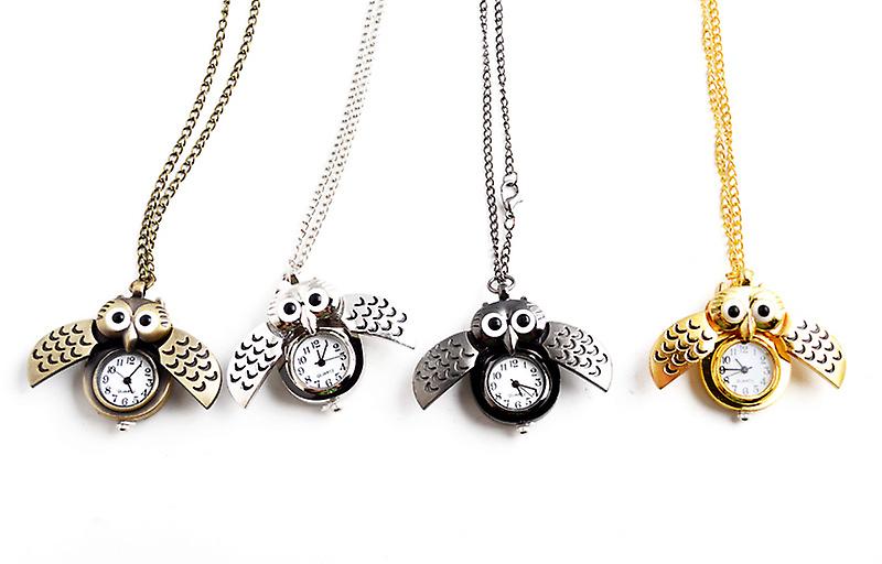 1PCS Tiny Cute Owl Shaped Pendant Necklace Pocket Watch for Kid Men Women