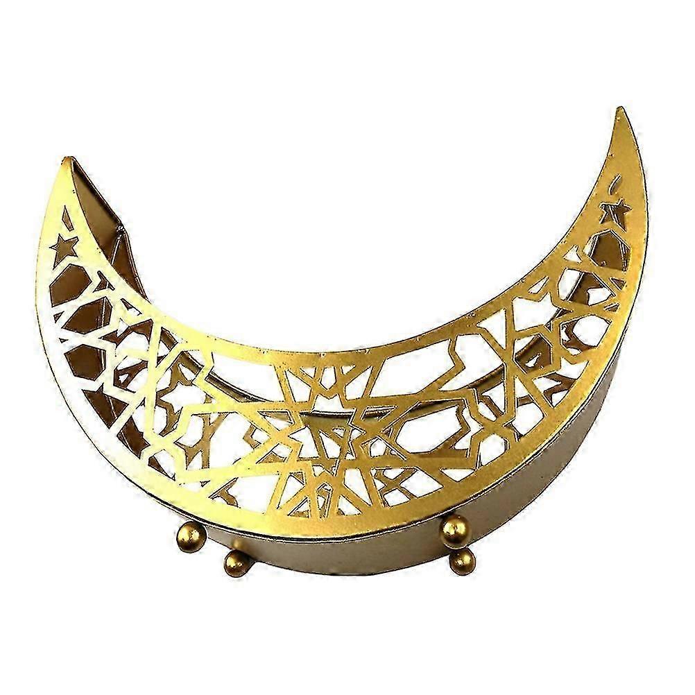 Description Thistrayworks greatly for treating or just keeping a variety of snacks together on Eid Ramadan festival.Made of iron material, creative Ramadan festival designed shape. Thetraymakes it easy to serve parties, for candies candies, nuts,melon seed, and other treats. Features -Material: Iron.-Size: About30x21x8cm/11.79x8.25x3.14 inch.-Moon shaped Islamic theme elements, beautiful decoration.-Exquisite pattern hollow design, can be drained. Easy to store and clean.-High-quality materials and production technology, strong and durable.-Golden paintlooks beautiful, you can put it anywhere in your home to increase the atmosphere.-Environmental protection materials, odorlessand safe. Very suitable for Islamic decoration props, home furnishings, banquets, party table fruit trays.Packing list: 1 x tray