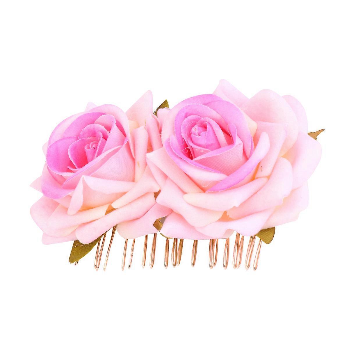 1pc Cloth Art Hair Comb Dual Flower Headdress Rose Hair Decoration Party Headwear for Women Girls Brides