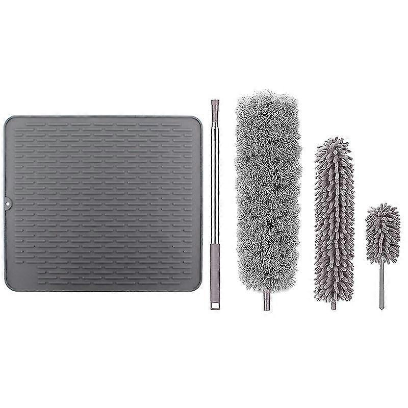 1 Pcs Large Silicone Placemat Dish Drying Mat & 1 Set Microfiber Duster,duster Cleaning Kit With Extension Pole