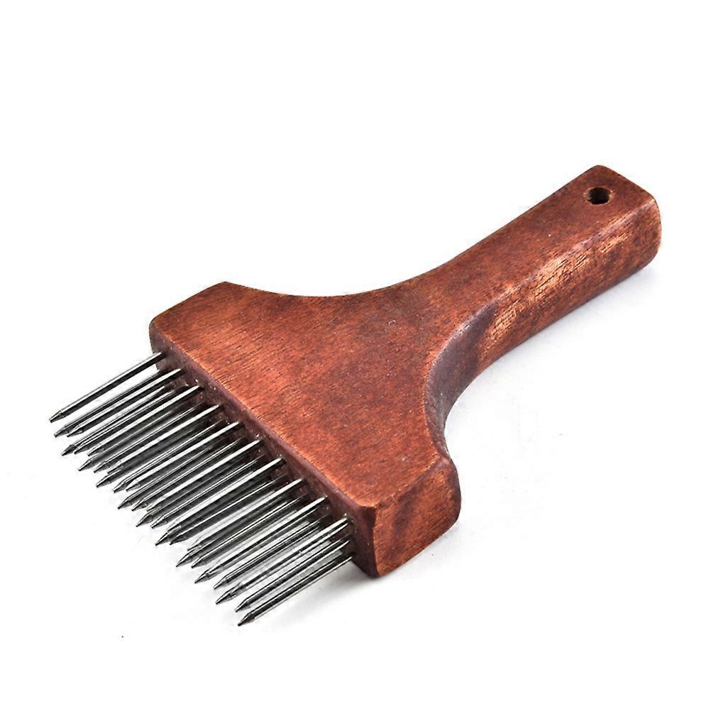 1Pc Meat Tenderizer Non Tools Mini Needle Steak With Wooden Handle Professional Stainless Steel Needle Pork Kitchen Pounder (Dark Red)