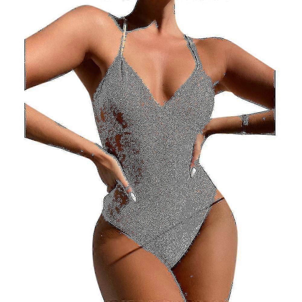 1 Piece Swimsuit Women Shiny Swimwear Sexy Monokini Bikini