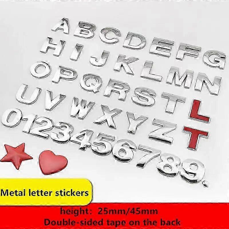 1Pcs 3D Metal 45mm 25mm DIY Letters Alphabet Emblem Numbers Chrome Labeling Car Sticker Digital Badg