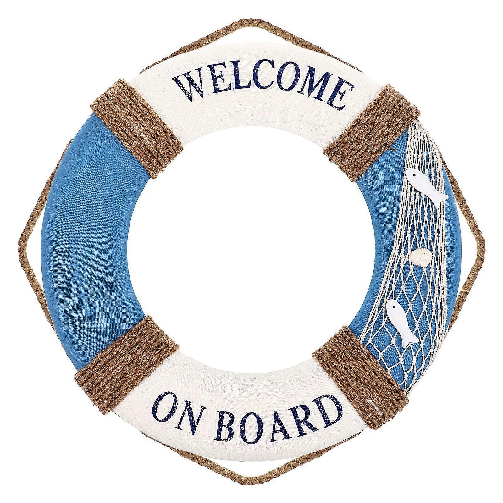 1PC 50cm Hanging Lifebuoy Decoration Mediterranean Style Crafts Home Decoration for Restaurant Cafe Shop Bar(Blue Fish)