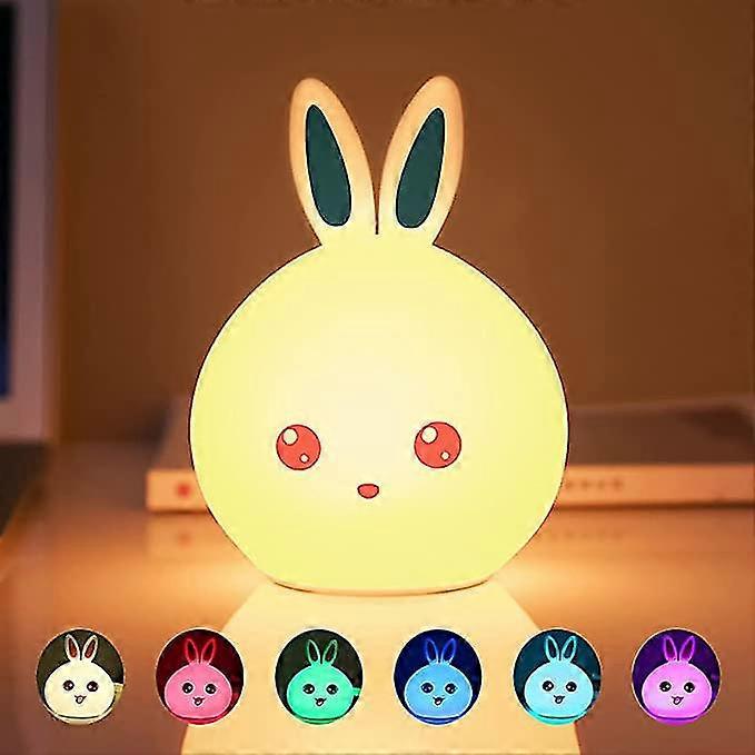 1pc LED night light silicone bedside lamp, usb rechargeable, 7 colors change with remote control or beat, 120*108*163mm(rabbit)