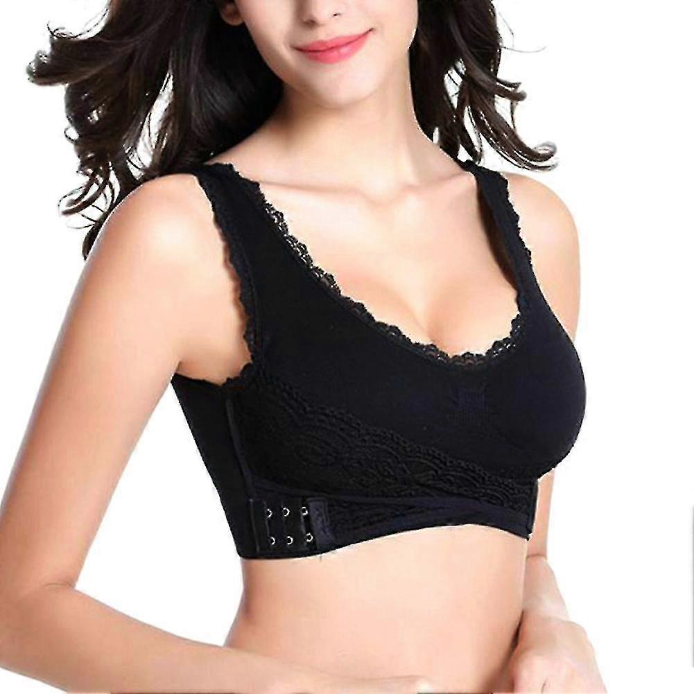 1 Pcs Front Cross Side Buckle Wireless Lace Bra Breathable For Women Sport Yoga