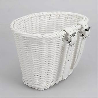 1Set Rattan Wicker Bicycle Basket Bike Handlebar Accessories White