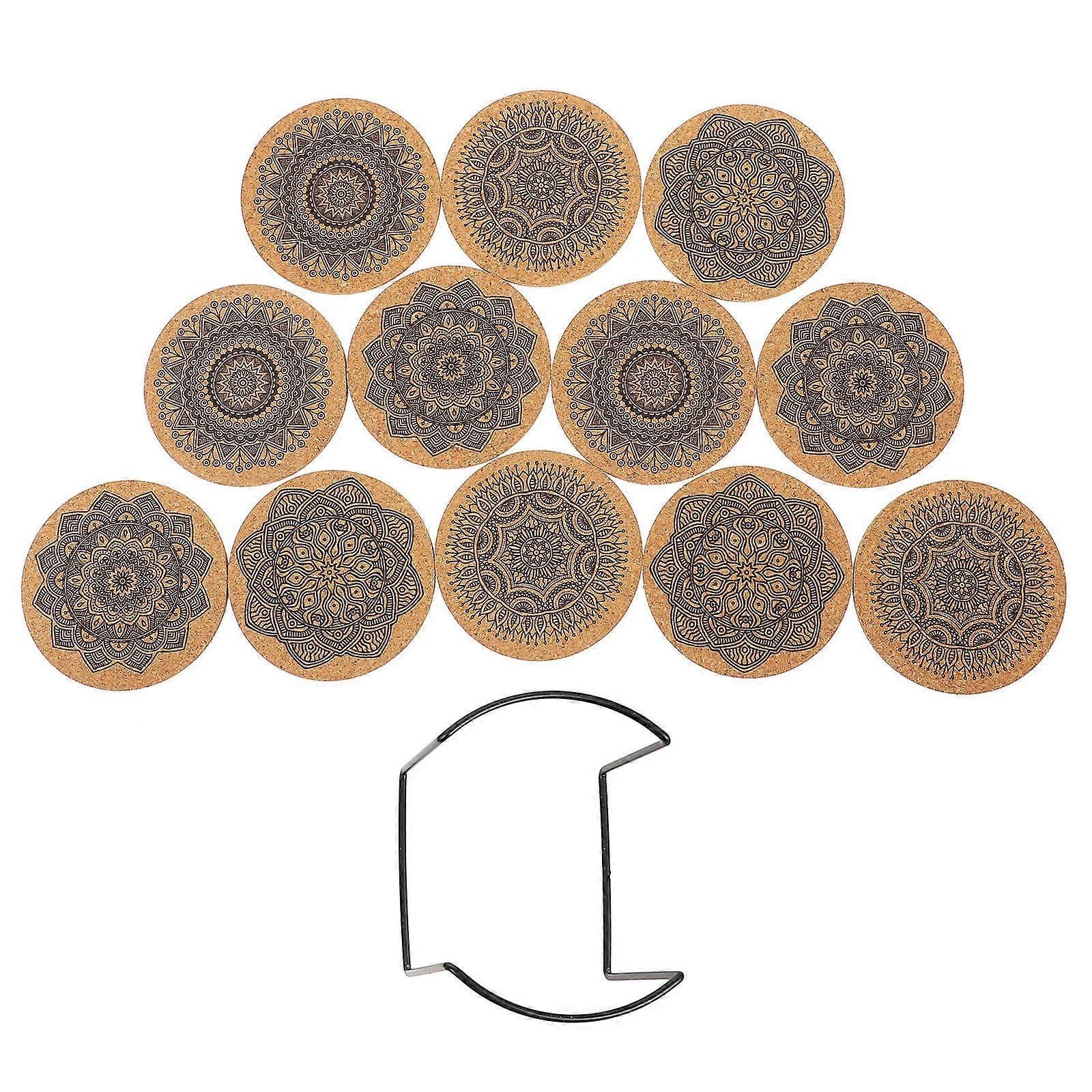 1 Set Creative Nordic Mandala Wooden Coasters with Rack – Round Soft Cork Drink Mats for Home, Office, or Café – Unique Decorative Table Protectors,
