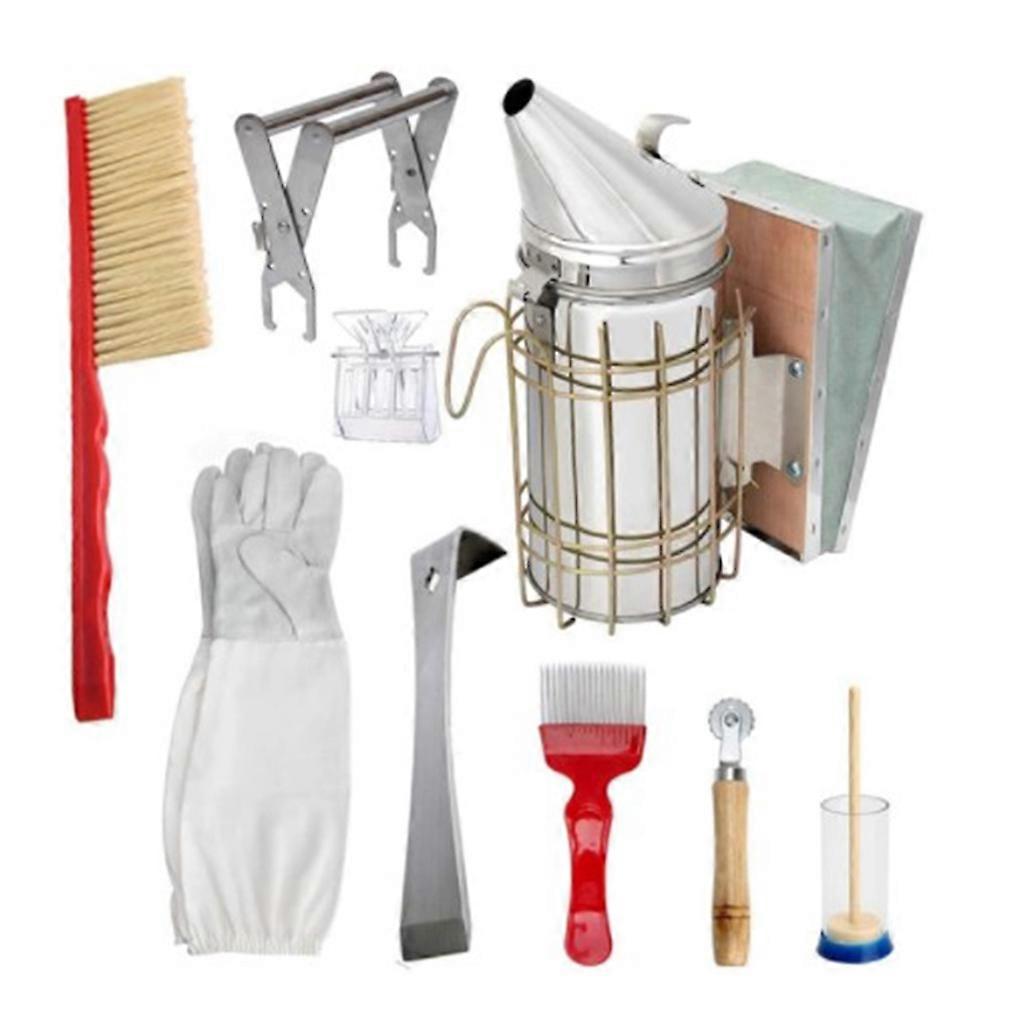 1 Set Beekeeping Supplies Tools Kit Stainless Steel Bee Hive Smoker Brush Gloves Scraper Honey Knife Clip Accessories for Beekeeper Starter