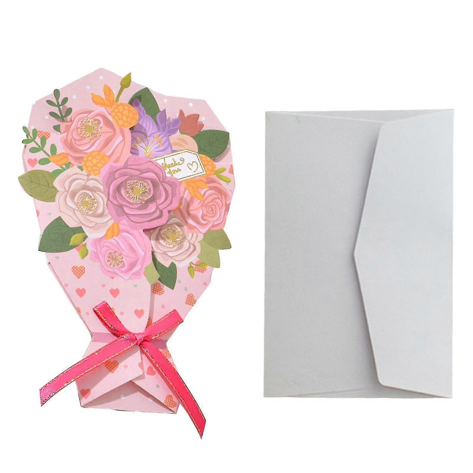 1 Set Greeting Card Foldable Diy Handwriting Paper Art 3d Folding Flower Mother's Day Card With Envelope For Present Qinghai Best Gift