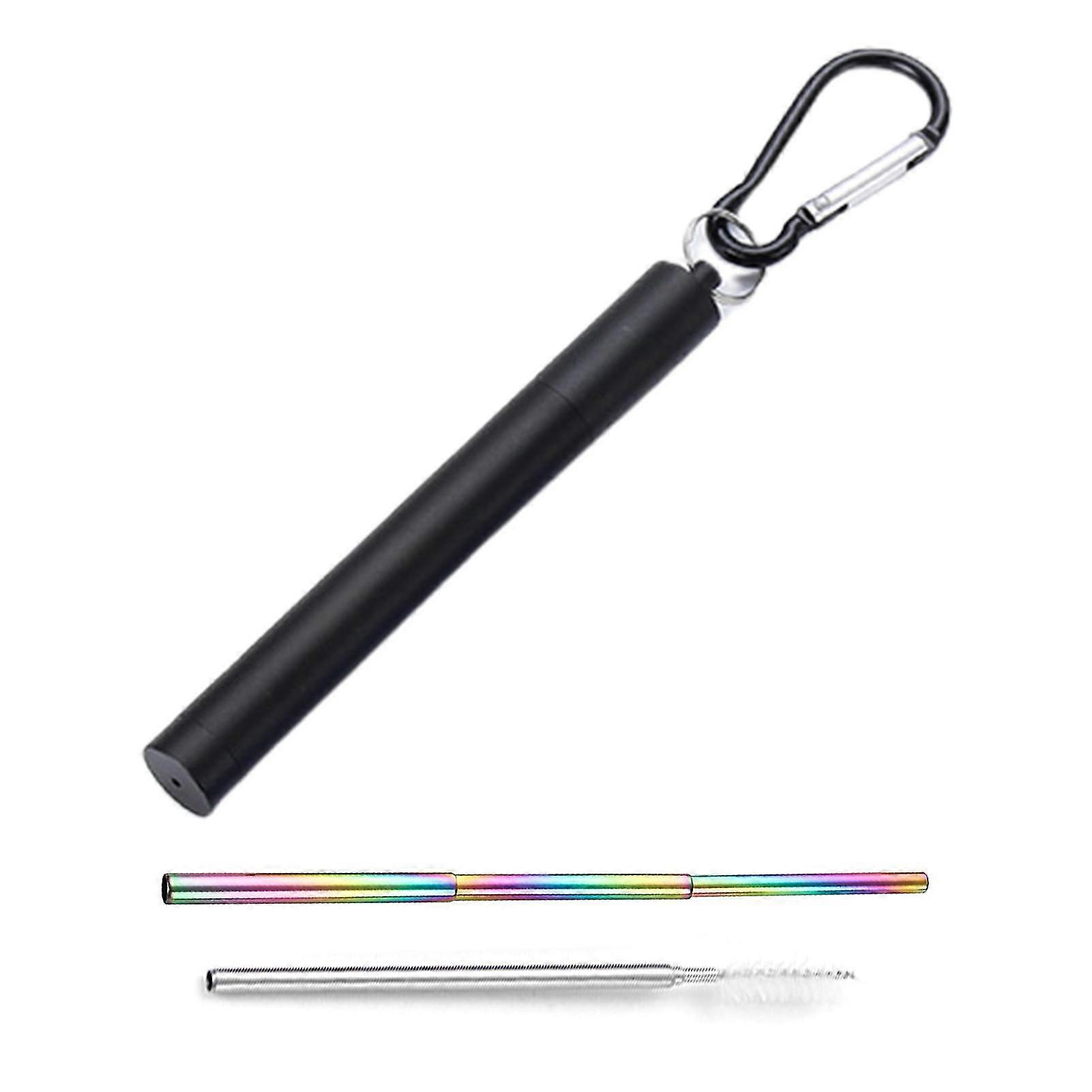 1 Set Telescopic Portable Drinking Straw Stainless Steel Collapsible Colorful Drinking Straw for Kitchen