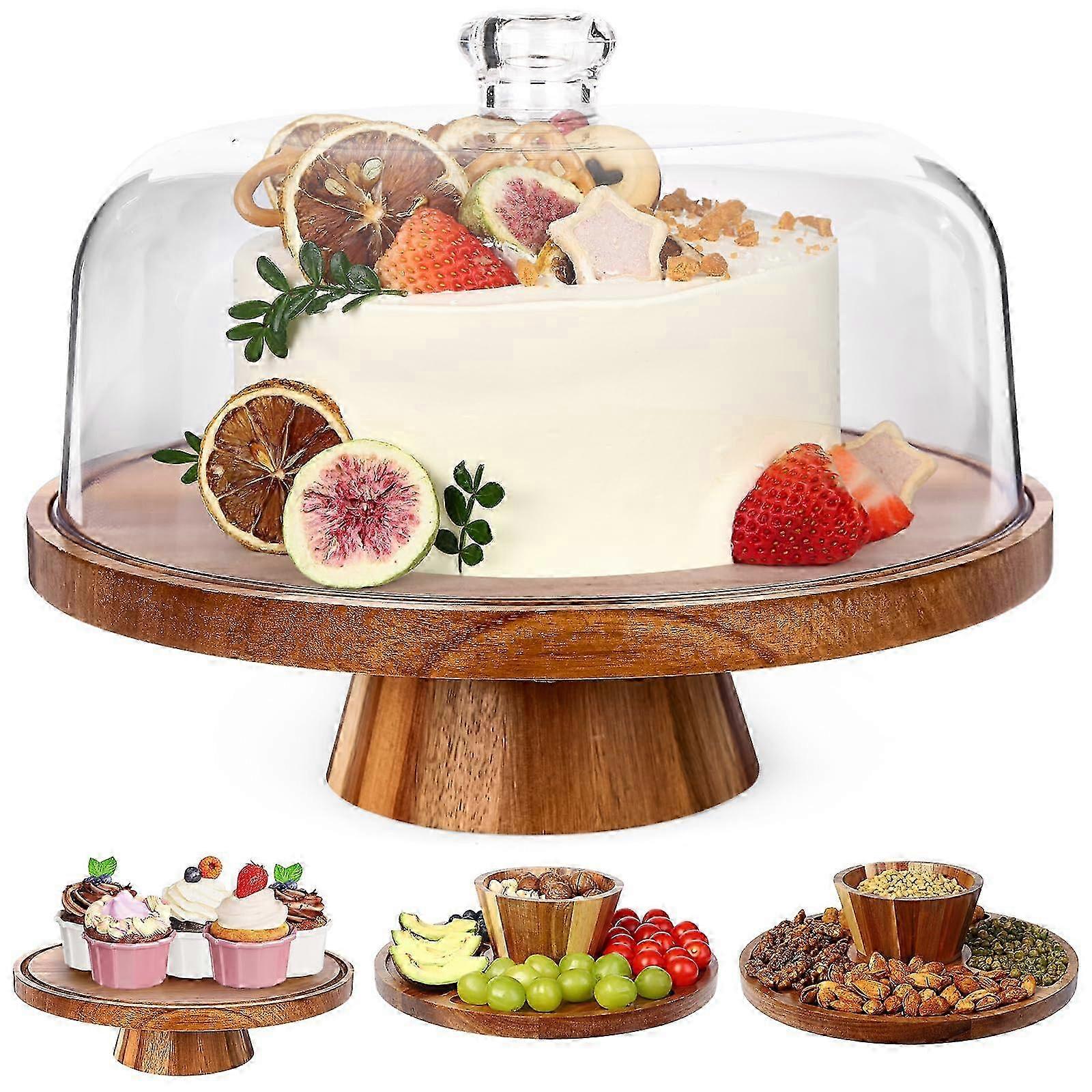 1 Set Acacia Wood Cake Stand for Birthday Celebration or Kitchen Party