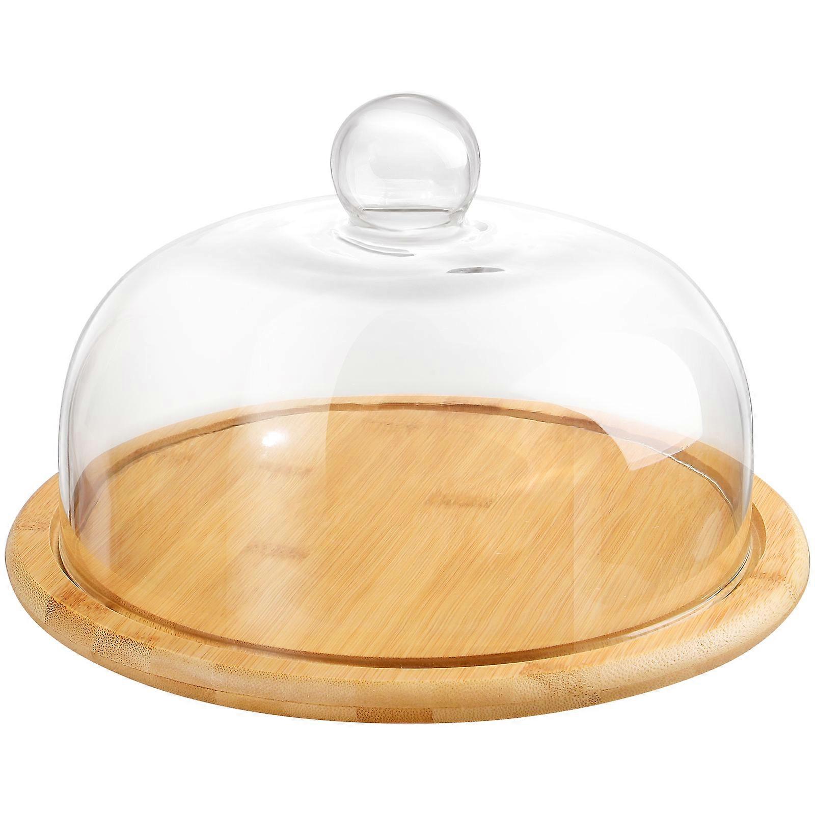1 Set Wooden Cake Server with Glass Dome for Food Display Plate Pastries Serving Tray Dessert Holder