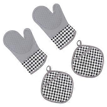 1 Set Heat Resistant Insulated Oven Mitts and Pot Holder with Comfortable Grip for Cooking and Baking