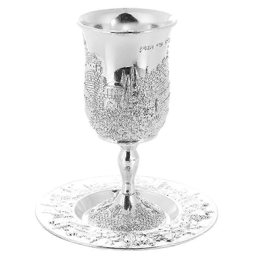 1 Set Silver Plated Kiddush Cup With Saucer Judaica Shabbos Wine Cup Passover Gift Option