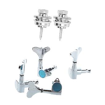 1 Set Sealed Bass Tuning Pegs Tuners Machine Heads & 2 Pcs Non-slip Guitar Strap Lock Guitar Belts Buckle