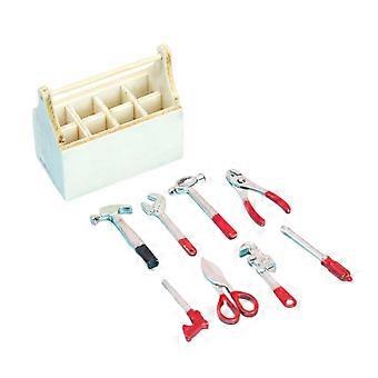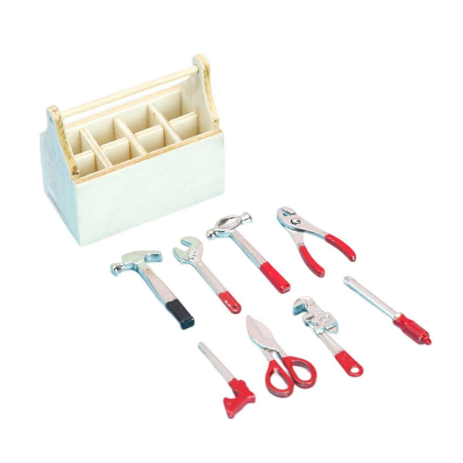 1 Set Miniature Wooden Toolbox With 8 Tools Realistic Appearance Tools Model Toy For Dollhouse Decoration