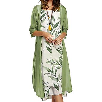 1 Set Office Lady Cardigan Dress Bamboo Leaves Large Hem Summer Vintage Elegant Dress Set For Party