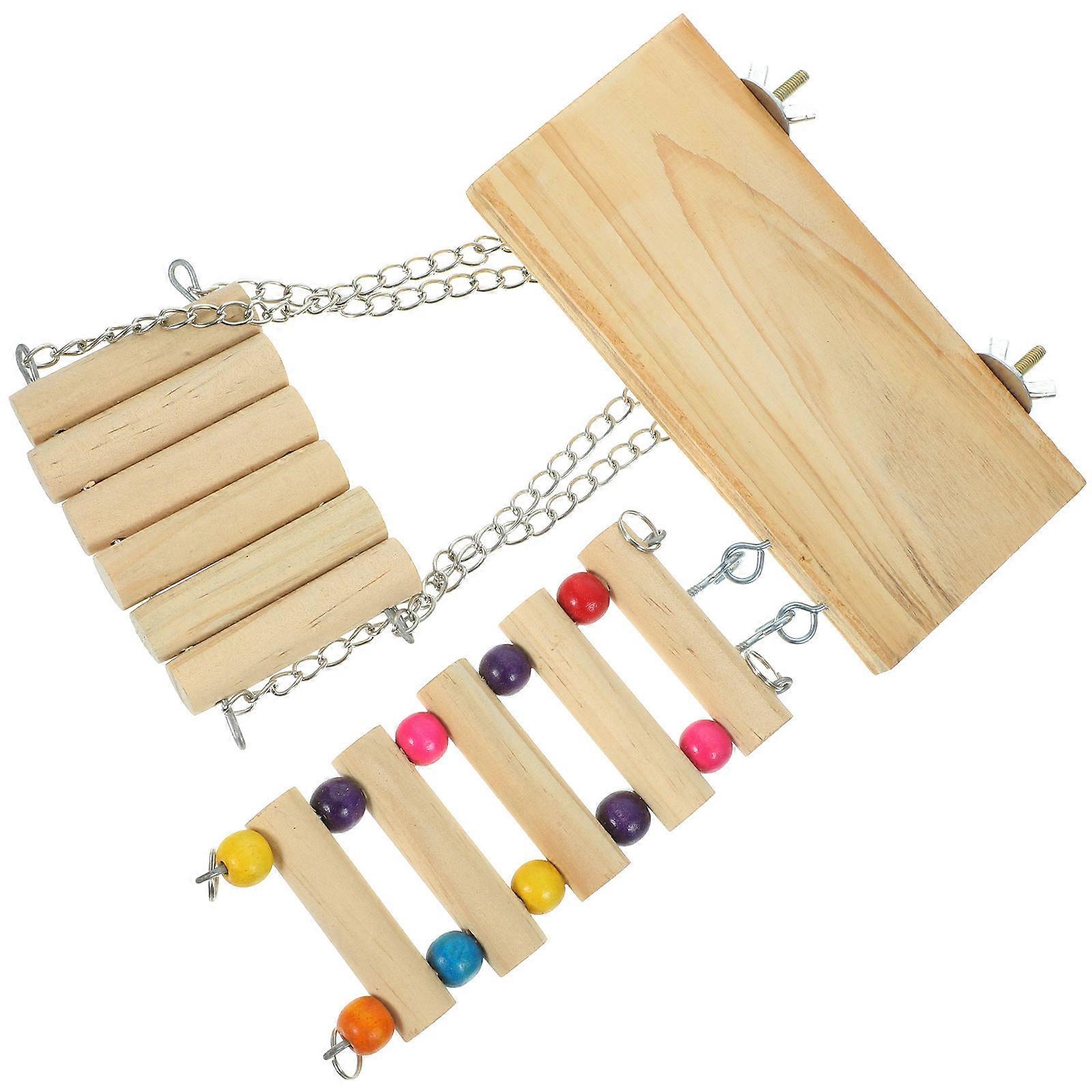 1 Set Wooden Platform with Swing Ladder for Parrot Parakeet Cockatiel Birds Perch
