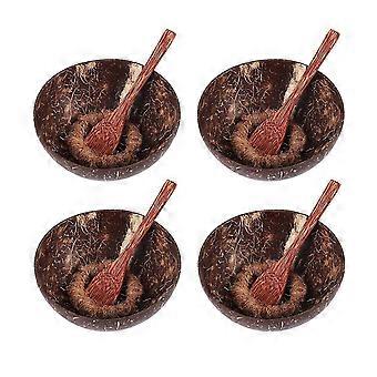 1 Set of Natural Coconut Shell Bowls with Spoon and Stand Suitable for Ice Cream, Desserts, Rice, Snacks, Nuts