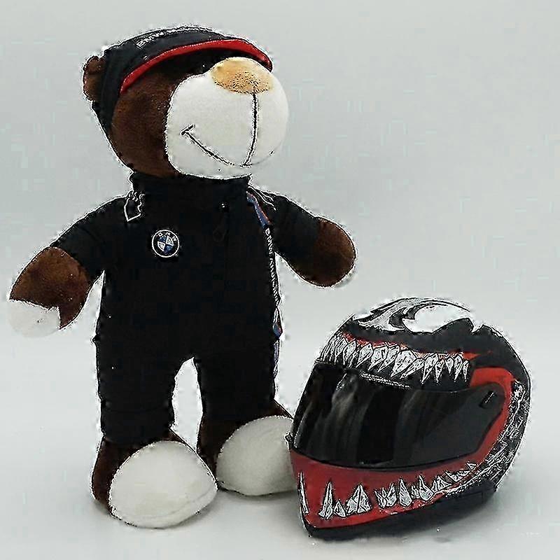 1 set of Kawaii 16cm helmet and 30cm teddy bear motorcycle decorations, exquisitely filled plush toy