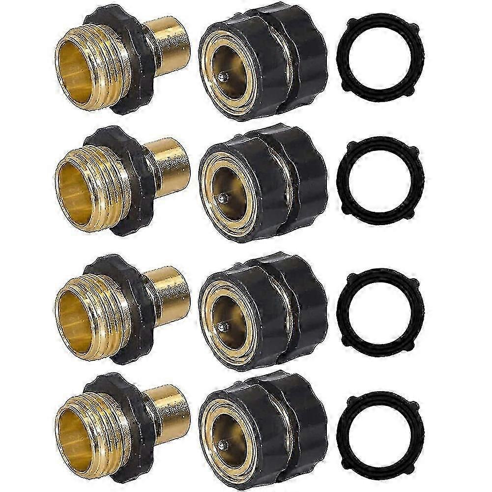 and high quality. Easy to Remove & Attach: Easy to install and disassembly, no need for cumbersome procedures, saving a lot of time, it is the for home use. Tight Connection No Leak: Premium aluminum material design can effectively prevents leakage, rust, corrosion and wear. And has a longer service life. Widely Use: This garden hose quick connect fits all 3/4 inch standard hose perfect for watering units, pressure washers, boats, lawn sprinklers, faucets and other garden accessories. High Wear-resistant and excellent durability. Colour:black Material:brass Package Contents: 4 x extra garden hose rubber washers 4 x female hose aluminum quick connectors 4 x male hose aluminum quick connectors Only the above package content, other products are not included. Note: Light and different displays may cause the color of the item in the picture a little different from the real thing. The measurement allowed error is +/- 1-3cm.