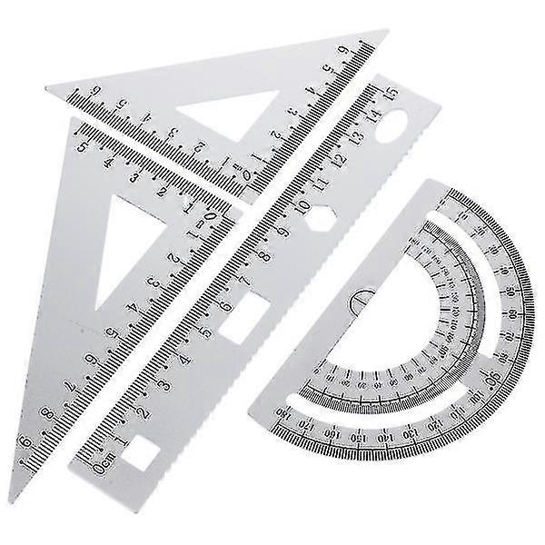 1 Set Of 4pcs Diy Metal Ruler Sturdy Office Metal Ruler Ruler Stationery Set Triangular Plate Protractor Testing Ruler For Pupils Students Silver