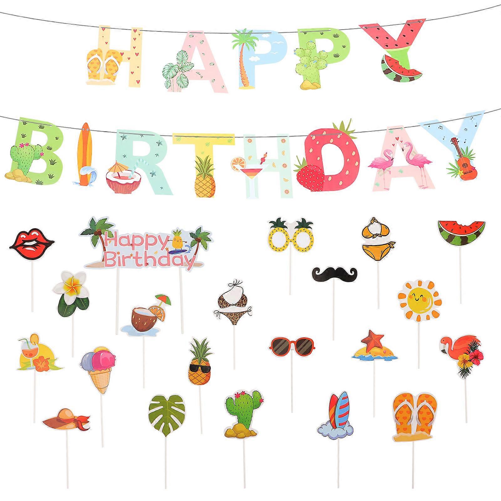 1 Set Hawaiian Happy Birthday Banner Happy Birthday Cake Topper for Beach Party