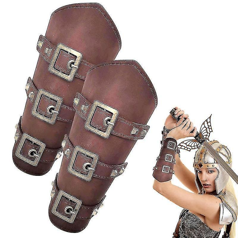 1 Pair Medieval Arm Guards Arm Bracers Cosplay Faux Leather Viking Armband Bracers Arm Guards For Men Women Adjustable Straps