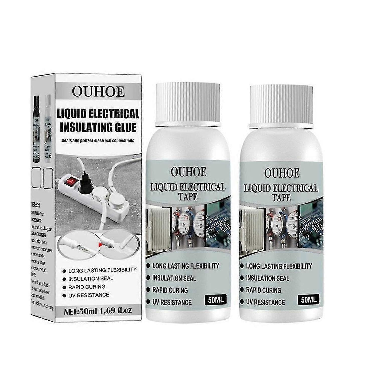 Product Name: liquid insulating adhesive<br> Product content: 50ml<br> Product weight: 65g<br> Product color: white, black<br> Product features: liquid insulation adhesive has stronger sealing performance, so that the wire can maintain the insulation state and prevent leakage<br> Specifications:<br> Convenient: perfect for quick access and portability!<br> Marking: liquid electrical tape can be used to make color marks for insulation, protection and connection.<br> Very durable: it maintains flexibility even under extreme conditions without cracking, hardening or peeling.<br> Multi scene use: it is also very suitable for various applications, including manufacturing electrical connections and components for ships, trailers, cars and trucks, timers, outdoor wiring, instruments, computers, circuit boards, switches, radio antennas, etc!<br> Waterproof and insulation: form airtight, insulated and sealed, waterproof, UV resistant and insulating coating.<br> Quick drying: quick drying formula for rapid curing.<br> Package Included:<br> 1 * insulating glue<br> Notes:<br> Don't leave 1 star and 2 star feedback without asking for help.<br> If you have any questions, please contact us. We will try our best to solve any problems and provide you with the best customer service.