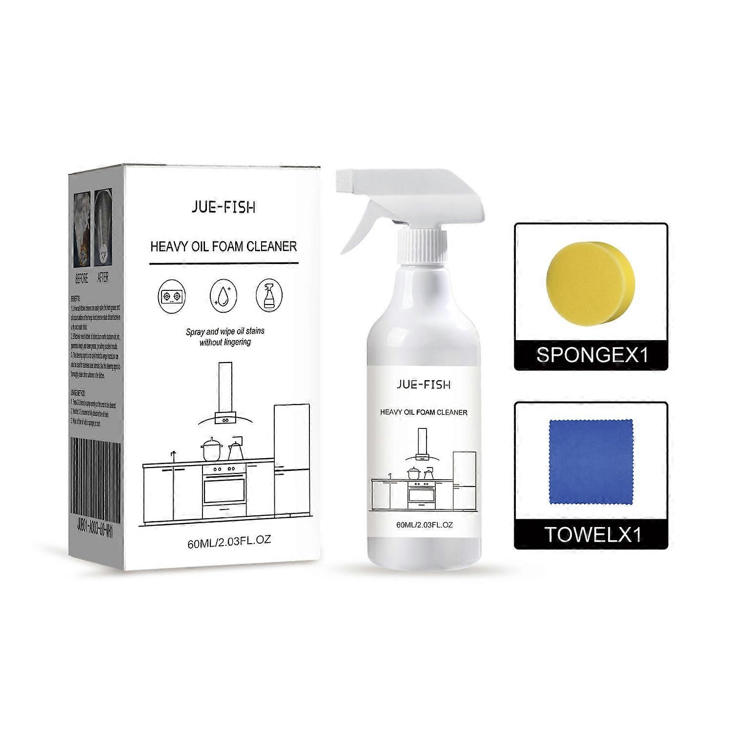 1-6x JUE-FISH Heavy Oil Foam Cleaner with Sponge & Cloth Stain Remover Kitchen Oven Grills Clean