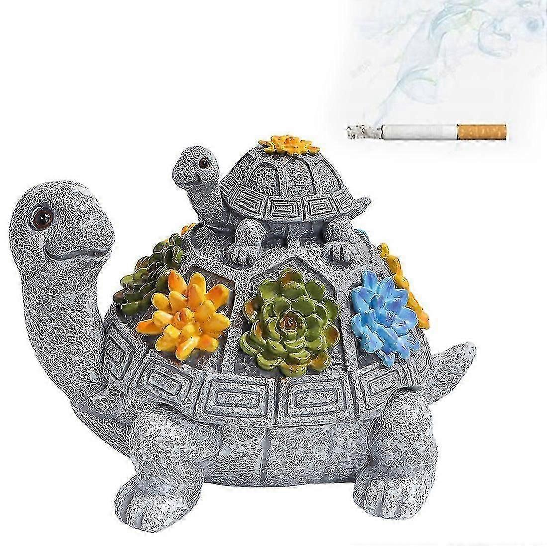 Ashtray, Outdoor Ashtray with Lid Smokeless Waterproof Ash Tray with Cute Turtle Decor, Resin Ashtray for Cigarettes 1pcsD-