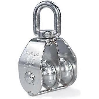 1-Pack M25 Double Sheave Blocks Lifting Pulley for Wire Rope Roller Bearing Sheaves 304 Stainless St