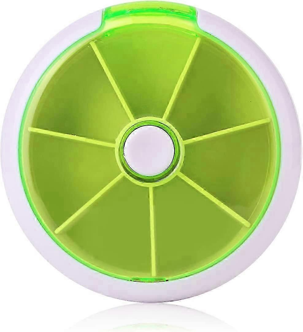 1 Piece Portable Mini 7 Day Circular Shape Rotary Fruit Style Pill Storage Case Box in Green Color