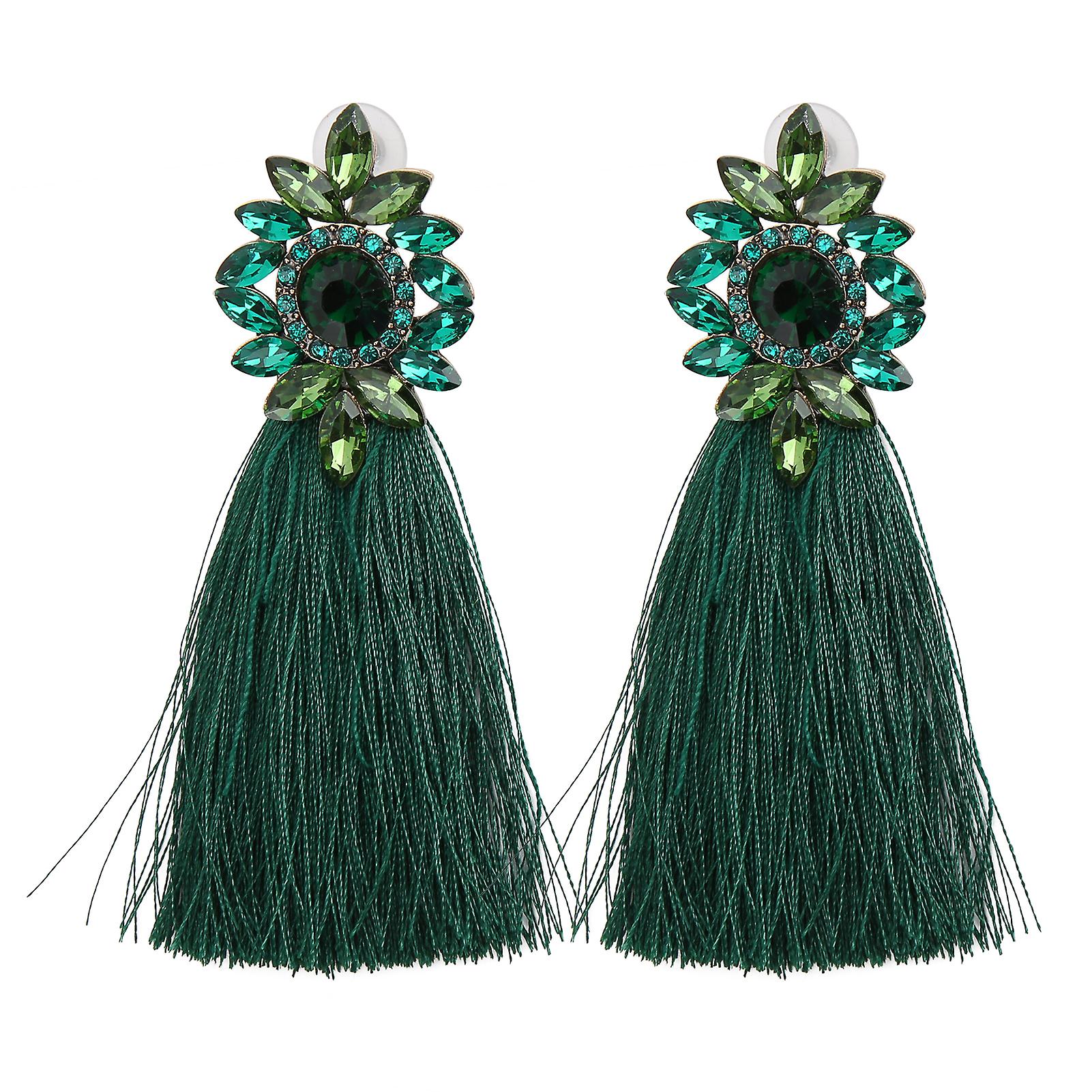 1 Pair Earrings Diamond Flower Shape Vintage Tassel Alloy Material Ear Studs Party DecorationGreen