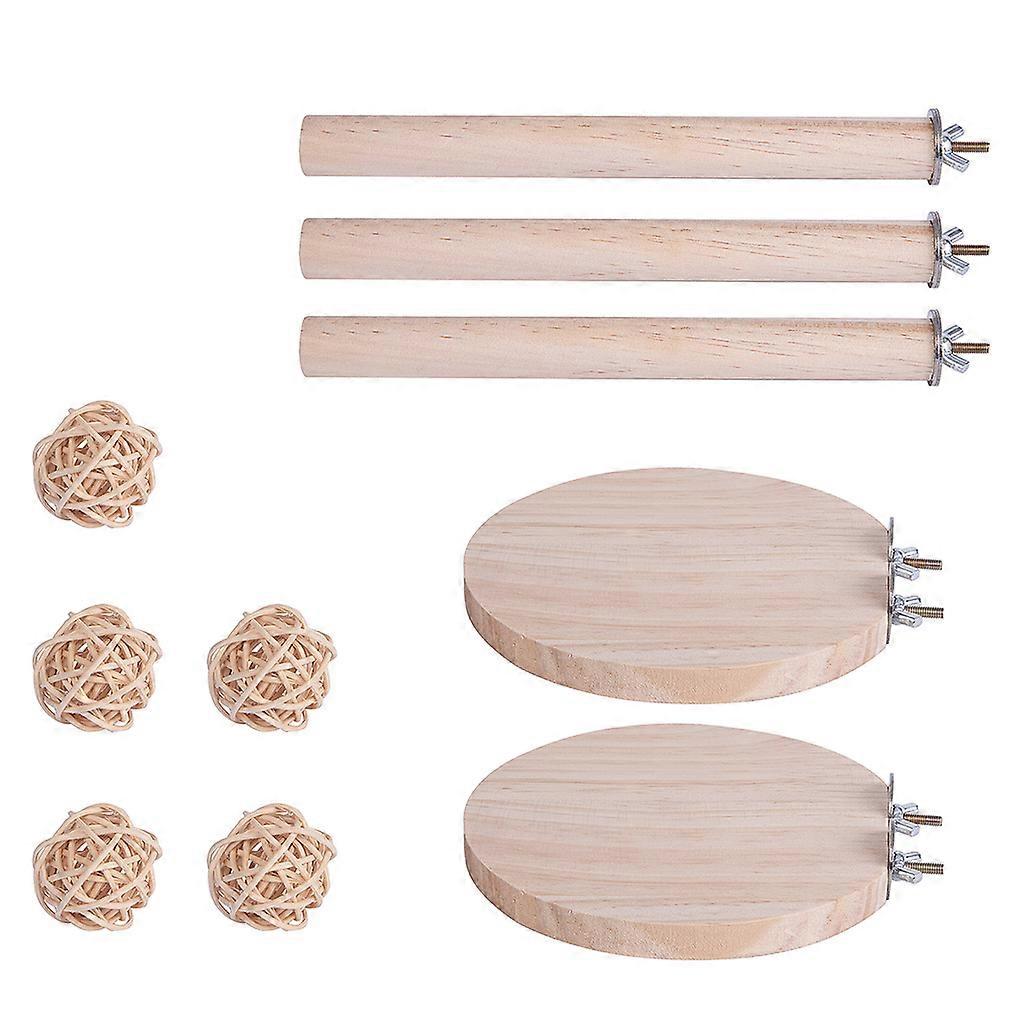 10 Pack Bird Toys Perch Platform Natural Wood Rattan Balls Cage Accessories