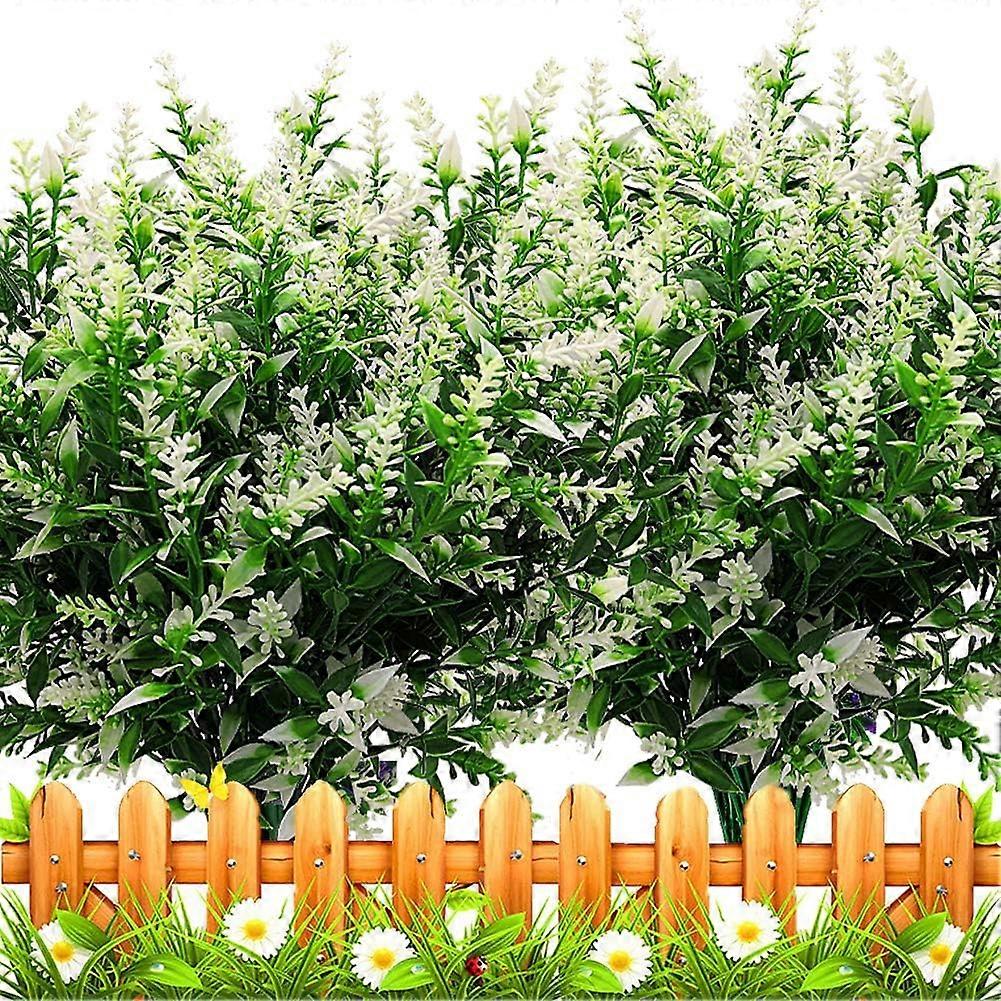 10 Bundles Artificial Lavender Flowers Outdoor Fake Plants Faux Plastic UV Resistant Flowers for Home Garden Porch Window Box and Cemetary Grave Decor