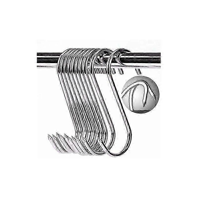Heavy Duty S Hook: Storage S hooks can hold up to 100kg, durable thicker does not fade,Waterproof,Anti-rust,Anti-corrosion. Great quality: Stainless steel S-shaped butcher hook, Very long life, thanks to food grade stainless steel, it is ideal for hanging sausages and meats. Attribute: set of 10 butcher hooks, diameter 4mm, length 12cm, S-shaped stainless steel hooks. One side is pointed hook. Multipurpose use: The S hook can be used in multiple ways, for hanging pots, pans and other kitchen utensils,Can be used as meat hook, butcher hook, kitchen hook, barbecue hook. . Note: The data are all manual measurements, please allow 1 - 3cm error, due to the difference in light and display, there will be some color difference, depending on the physical object received Delivery quantity: (according to the main picture)