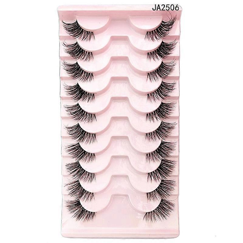 10Pair Natural Cat-Eye Wispy False Eyelashes Fluffy-Volume Strip Fake Eyelashes