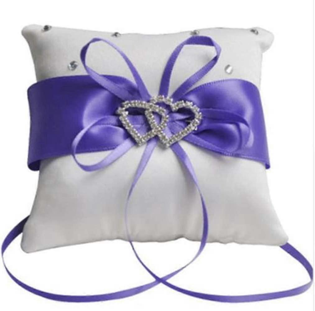 10cm Satin Double Hearts Decoration Wedding Ring Bearer Pillow Purple