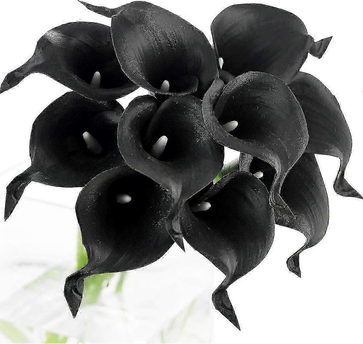 10 Stems Of Real Touch Calla Lilies Artificial Flower Bouquet, Perfect For Wedding, Bridal, Party, Home Office Dcor Diy (black)
